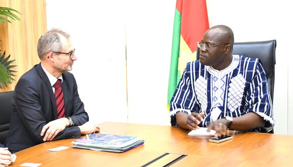 Les discussions entre les officiels ont porté sur la nécessité d’orienter les financements vers des projets à fort impact socio-économique, en cohérence avec les priorités nationales actuelles. Les deux personnalités ont souligné l’importance d’une approche ciblée, capable de répondre aux besoins urgents des populations tout en soutenant les réformes structurelles engagées par le Burkina Faso. L’ambassadeur Philippe Stalder a tenu à féliciter le Burkina Faso pour ses performances économiques remarquables, obtenues malgré un contexte difficile marqué par des crises sécuritaires et humanitaires. Il a mis en avant la résilience de l’économie burkinabè et les efforts soutenus des autorités pour préserver les équilibres macroéconomiques, maintenir la stabilité et poursuivre les réformes de fond.