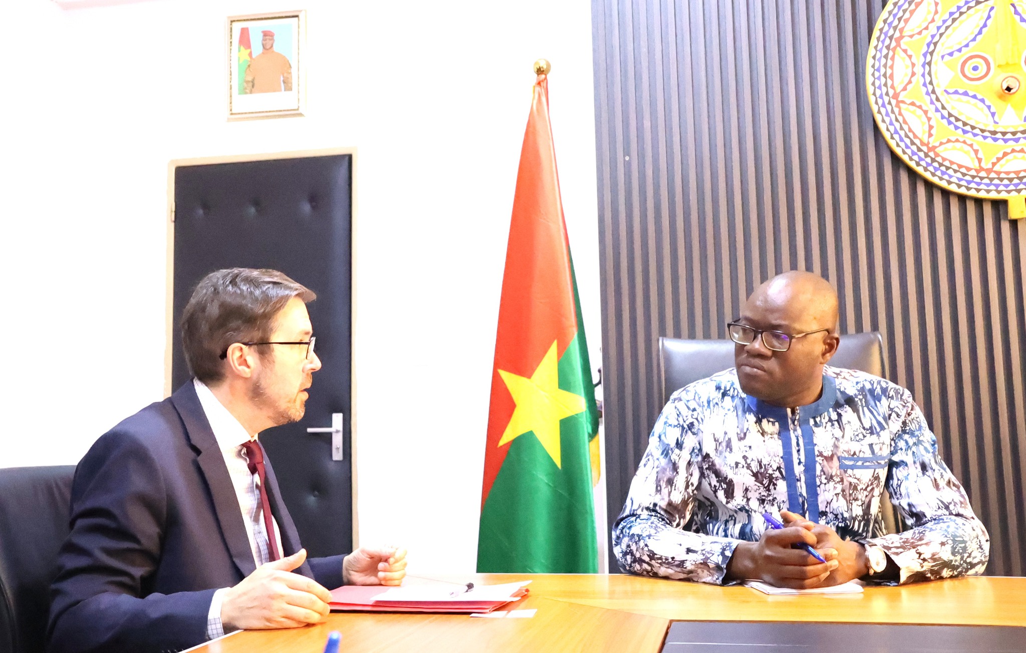 Après avoir été reçu ce jeudi 15 janvier 2026 par le Premier ministre burkinabè, Rimtalba Jean Emmanuel Ouédraogo, ainsi que par le ministre des Affaires étrangères, de la Coopération régionale et des Burkinabè de l’extérieur, Karamoko Jean Marie Traoré, l’Ambassadeur extraordinaire et plénipotentiaire du Royaume-Uni de Grande-Bretagne et d’Irlande du Nord auprès du Burkina Faso, Son Excellence Angus Philip McKee, a été reçu en audience le même jour par le ministre de l’Économie et des Finances, Dr Aboubakar Nacanabo.