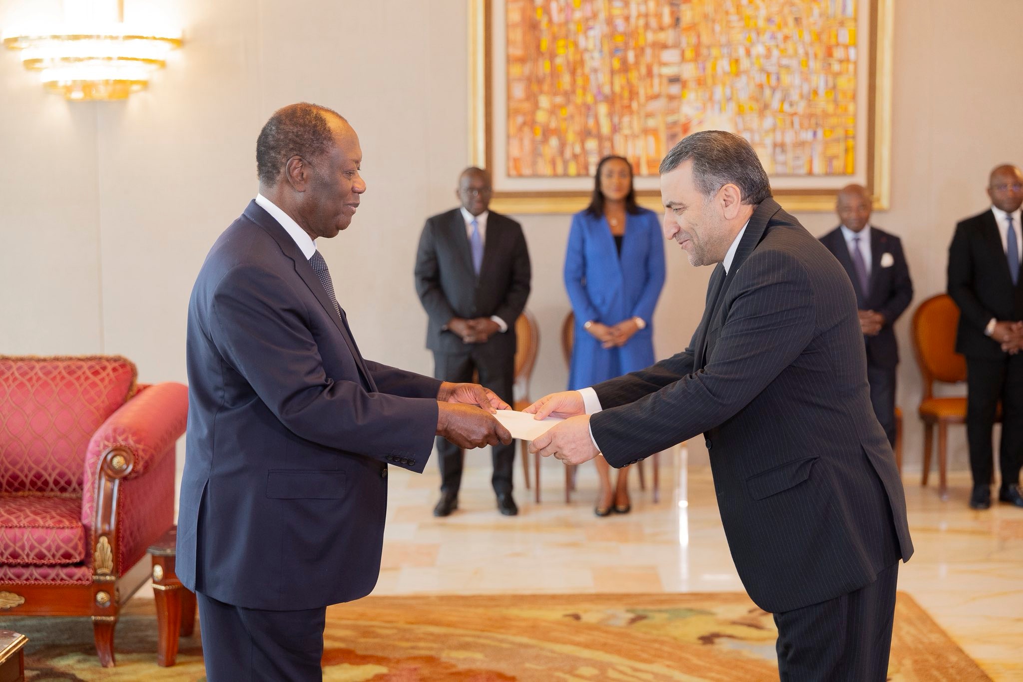 Ce mercredi, lors de la cérémonie de présentation de leurs Lettres de créance au Président de la République, Alassane Ouattara, les nouveaux ambassadeurs d’Iran, d’Italie, du Ghana et de Suède ont exprimé leur volonté de consolider et de diversifier les relations d’amitié et de coopération avec la Côte d’Ivoire. Mirmohammad Meigoni Seyed Gholamreza (Iran), Roberta Di Lecce (Italie), Alhassan Abu (Ghana) et Katrin Månsson (Suède) ont ainsi marqué le début d’un mandat diplomatique placé sous le signe de la prospérité partagée.